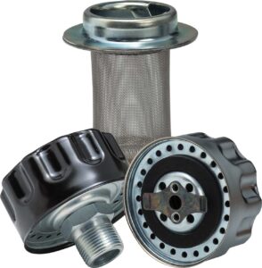 Fluid isn’t the only carrier of contamination in a hydraulic system. Never forget that air is a very common carrier of contamination. Systems need air to accommodate the rising and falling of fluid in the reservoir during operation. This is a common area for the introduction of contaminants. That is why systems need to be able to breathe. Most systems are designed with filler-breathers, components that do double duty: filter air entering the system and serves as a filler port when fluid needs to be added to the system. The 30 mesh filler basket helps keep debris out of the reservoir when introducing fluid and the 10 or 40 micron filter in the cap keeps particle contamination out. There are also many options to choose from to add if required; hi-neck, locking lugs, all nylon units, dipsticks, pressurized, threaded style.
